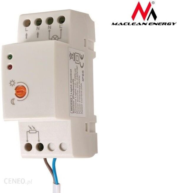 Wyłącznik czujnik zmierzchowy na szynę DIN z zewnętrzną sondą Maclean MCE83 220-240V/AC, 50Hz 20A.Urządzenie to służy do włączania, oraz wyłączania oświetlenia w zależności od pory dnia. Na jego działanie nie ma wpływu ani temperatura ani wilgotność otoczenia. Urządzenie o szerokim wachlarzu zastosować – doskonale sprawdzi się w ogordzie, na werandzie, a także przy instalacjach świetlnych użytku publicznego (np. latarnie drogowe).Funkcje specjalne- Regulacja natężenia światła: <2 – 100 lux- Opóźnienie zadziałania włączenia: 1-2 sek- Opóźnienie zadziałania wyłączenia: 4-5 sekAkcesoria w zestawie- Stopień ochrony sondy: IP65- Temperatura pracy: -20~+400 CPozostałe parametry- Napięcie zasilania: 230VAC / 50 Hz- Max. obciążenie: 3000W- Prąd obciążenia: 20A- Pobór mocy praca/czuwanie: około 0,5W